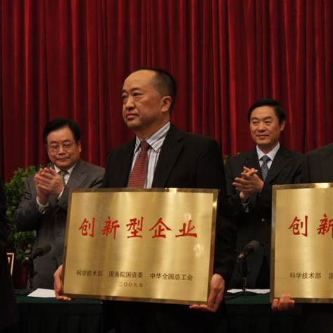 6月9日,國家技術創新工程四川省試點啟動大會在成都金牛壩國賓館隆重召開。省委書記劉奇葆向畜科公司鄺聲耀董事長授予國家創新型企業匾牌及證書。